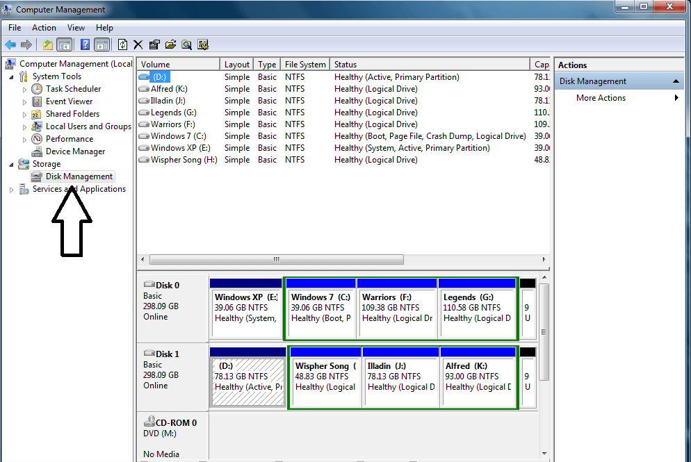 1) First of all you need to open Disk Management Utility in Windows 7.To open it follow the below given steps